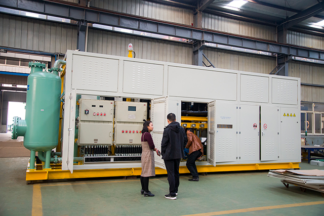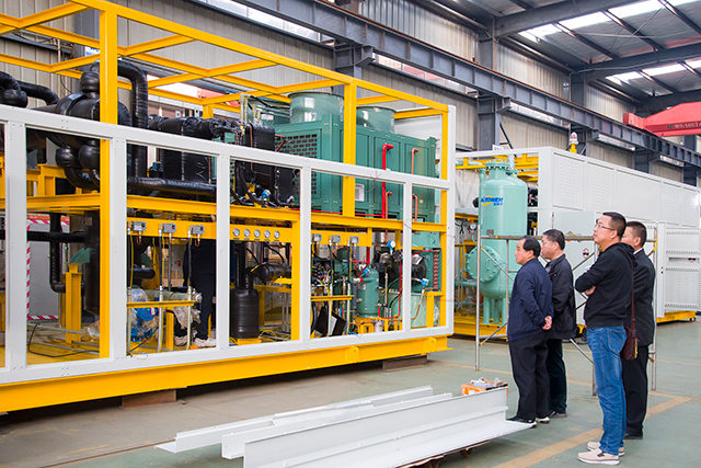 行至油气回收设备车间时,东土科技客户对组装中的VOCS油气回收系统兴趣颇深,董事长程平先生向客人全方位展示公司在该系统应用方面的技术优势、制造优势、市场优势,东土科技集团公司副总经理曹总对深奥图产品的精湛工艺和严苛的质量检验标准给予高度评价和赞扬。
